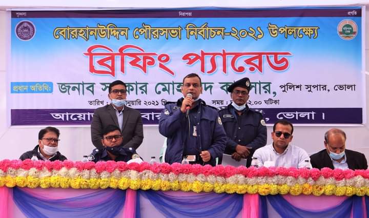 ভোলায় পৌরসভা নির্বাচন উপলক্ষে পুলিশের ব্রিফিং প্যারেড অনুষ্ঠিত।।
